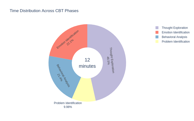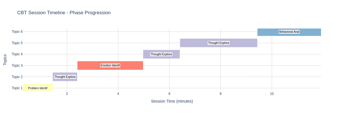 The emotional trajectory reveals a classic therapeutic arc: initial negative affect gradually yielding to neutral and occasionally positive states as cognitive restructuring takes hold.