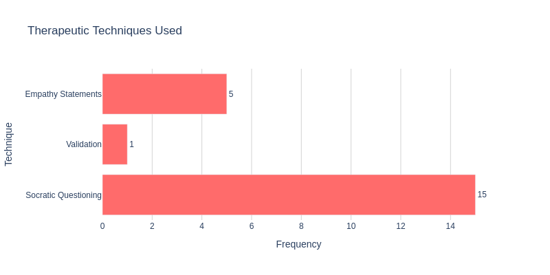 The dominance of Socratic questioning (60% of therapist utterances) demonstrates masterful implementation of guided discovery - a technique tracing its lineage from ancient Athens to modern consulting rooms.